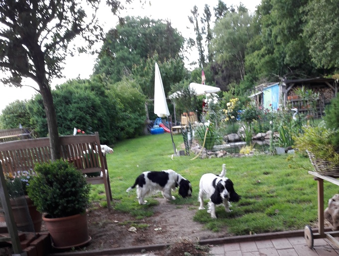 Wir über uns! Unser Zuhause liegt in der nördlichen Region Hannover, 24 km vom Stadtzentrum Hannover entfernt in der Gemeinde Wedemark Ortsteil Negenborn. (Dieser Name stammt aus dem Plattdeutschen und bedeutet: "Neun Quellen") Aus diesem Grund haben wir uns den Zwinger Namen "von den neun Quellen" ausgesucht. 1990 bekamen wir von unserer Nachbarin Frau Wordel-Fust, aus ihrer Cocker Spaniel Zucht “vom Tannenwappen“, unsere erste Cocker Hündin mit dem Rufnamen "Nutje" (Châtaiqne cle la Bernassiene). Nutje war bereits drei Jahre alt, aber wir hatten uns sofort in diese kleine Braunschimmel Hündin verliebt. Im Jahr 1998, unsere Nachbarin gab aus Altersgründen ihre Cocker Zucht auf, bekamen wir dann aus deren letzten Wurf unsere zweite Hündin mit dem Namen Funny (Geburtsname: Fidelity vom Tannenwappen). Mit Funny machten wir dann 2000 unseren ersten Wurf. Zwei Jahre später folgte dann der zweite Wurf. Aus beiden Würfen behielten wir je eine Hündin: Unsere Blauschimmel Hündin Abeja und unsere Orangeschimmel Hündin Banja. Es folgten dann aus weiteren Würfen, Carrie, Holly, unser Rüde Janosch, unsere Hündinnen Neele, Pauline, Sina, Vinja, Wolke und zu guter Letzt unser Rüde Elliot. So dachten wir, nur kommt es meistens anderes und meistens als man denkt. Und so kamen noch die Hündinnen Helene und Imilia und der kleine Rüde Itimu in unser Rudel. Da ja das Leben nicht ewiglich dauert, mussten wir auch einige unserer lieben Cocker über den Regenbogen gehen lassen. Aber das gehört nun mal dazu und wir behalten sie immer in bester Erinnerung und danken ihnen für die Freude die sie uns gemacht haben. Unsere Hunde leben bei uns im Haus und lieben unseren großen Garten (2400 m²). Sie sind sehr auf die Familie fixiert und jeder Besucher wird freudig mit lautem Gebell empfangen. Sobald ein Ball ins Spiel kommt geht die wilde Jagd durch unseren Garten los. Wir züchten Cocker Spaniel weil wir diese Rasse lieben, sie sind sehr verschmust, Kinderlieb, temperamentvoll und manchmal auch ein wenig dickköpfig. Uns macht es Freude, zu sehen wie sich die kleinen Welpen entwickeln und es ist immer wieder spannend, mit lieben Menschen in Kontakt zu kommen die sich für einen Cocker aus unserer Familienaufzucht “ von den neun Quellen “, entscheiden. Wie sagte doch einst Heinz Rühmann, Zitat: “ Natürlich kann man ohne Hund leben, es lohnt sich nur nicht!“
